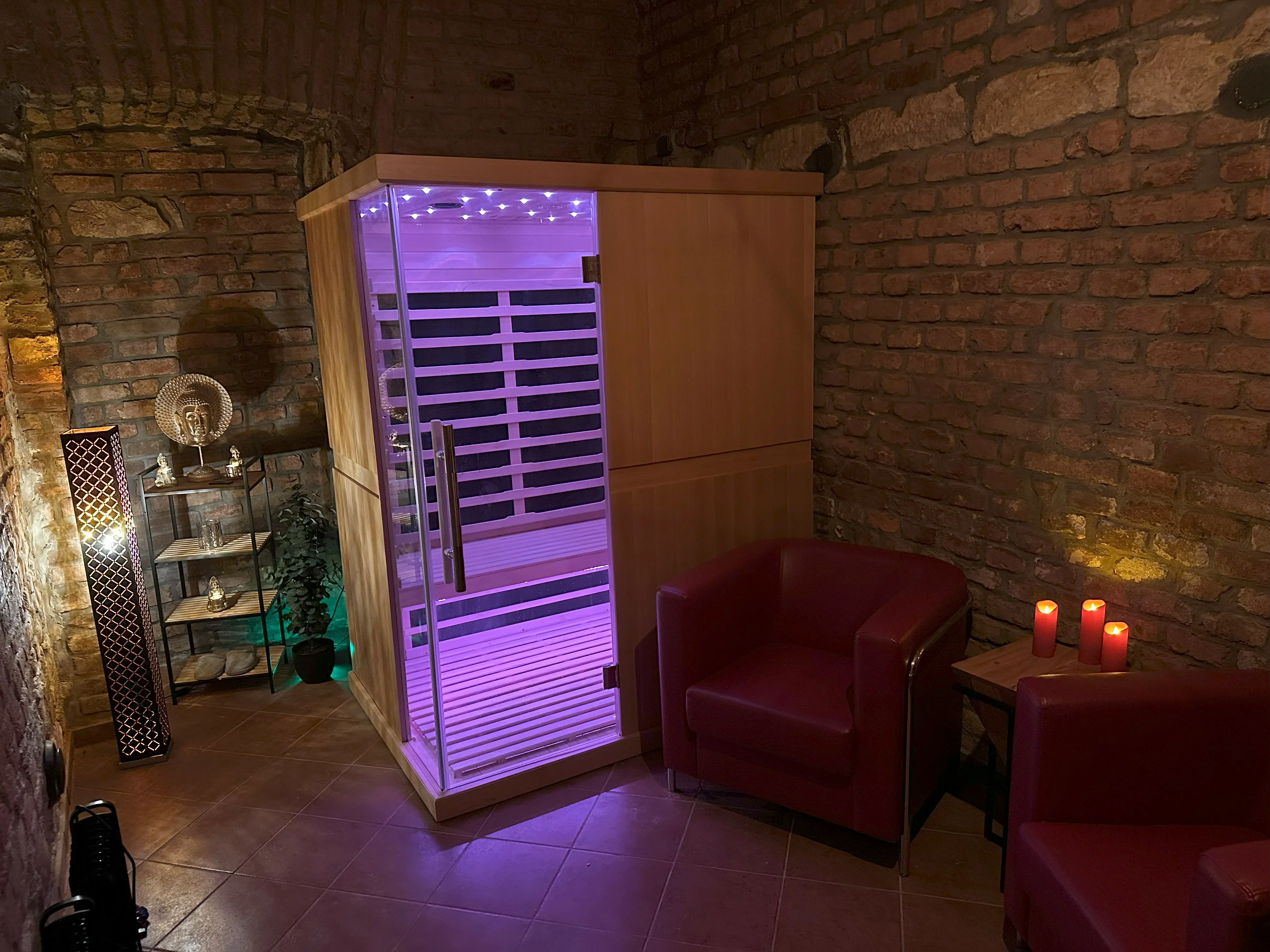 Horký vzduch se dotýká vaší kůže stejně něžně jako ruce, které vás dovedou k naprostému uvolnění. Naše sauna je místem, kde se relaxace mění v hru smyslů – teplo, dech, vlhkost a tlumené světlo se spojují do zážitku, na který se nezapomíná.
